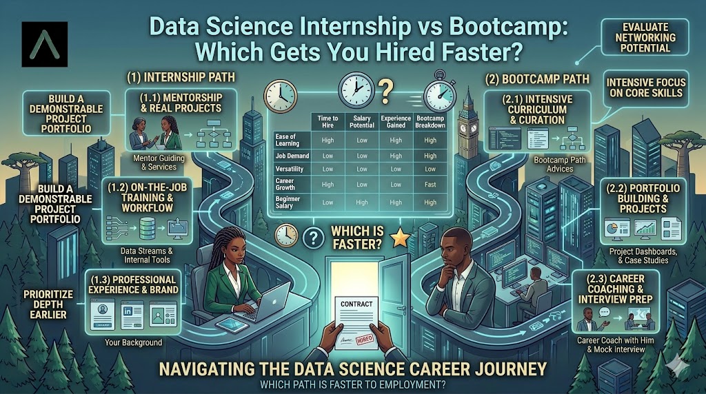 If you want to break into data science, you’ve probably asked yourself a practical question: should you do a data science internship or join a bootcamp? Both can help, but they do very different things.